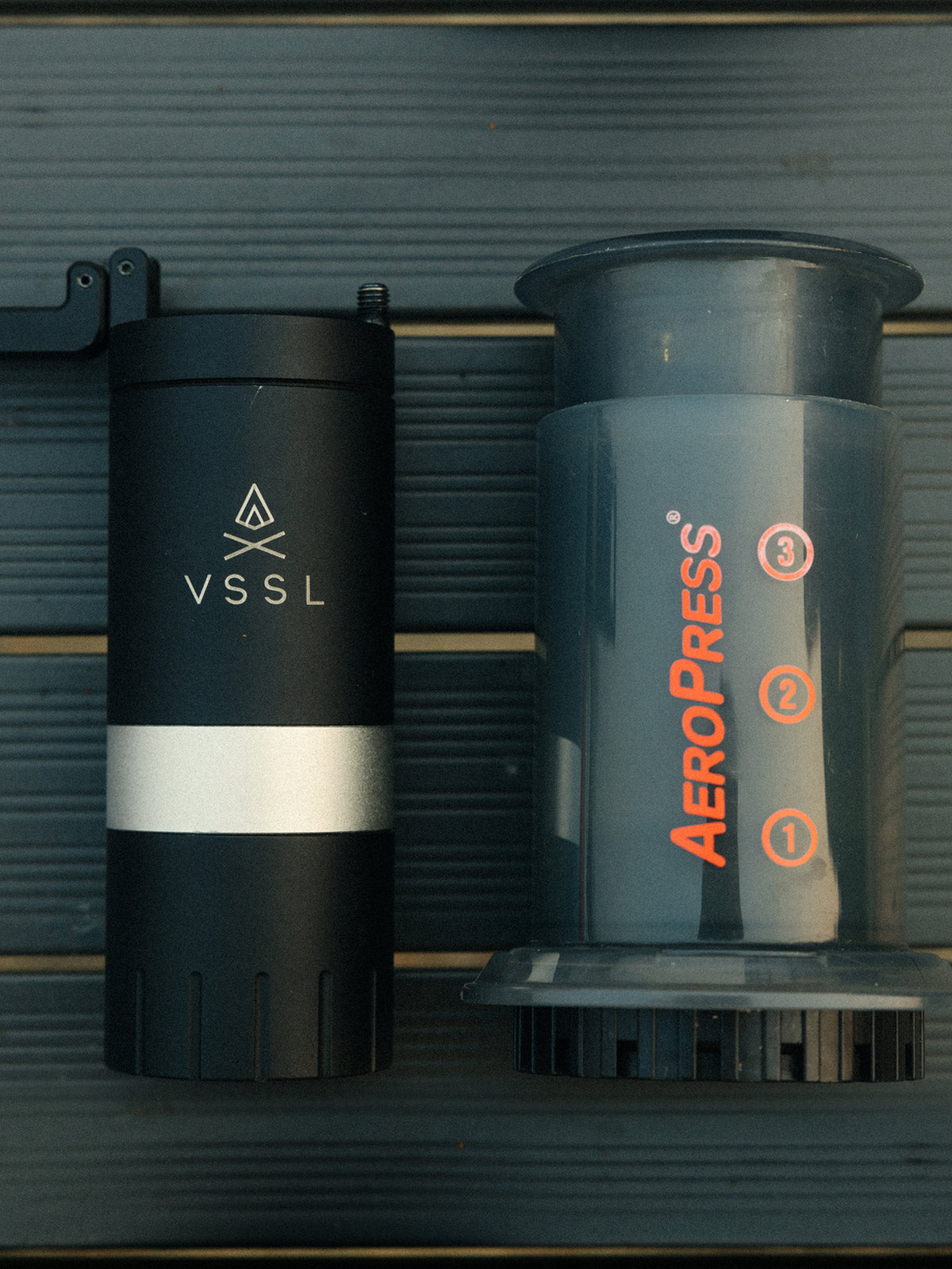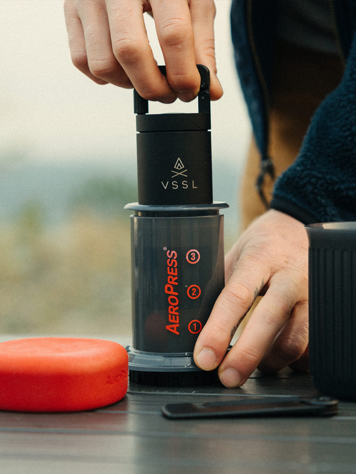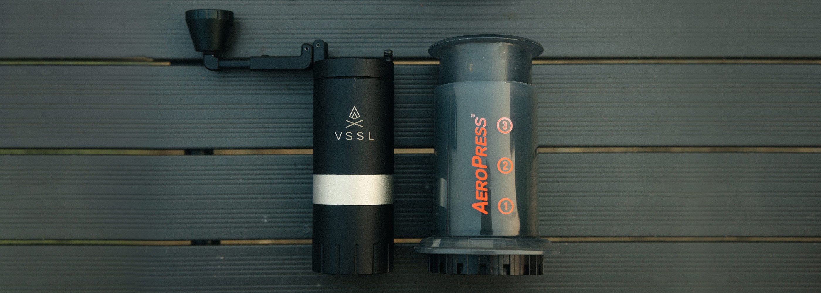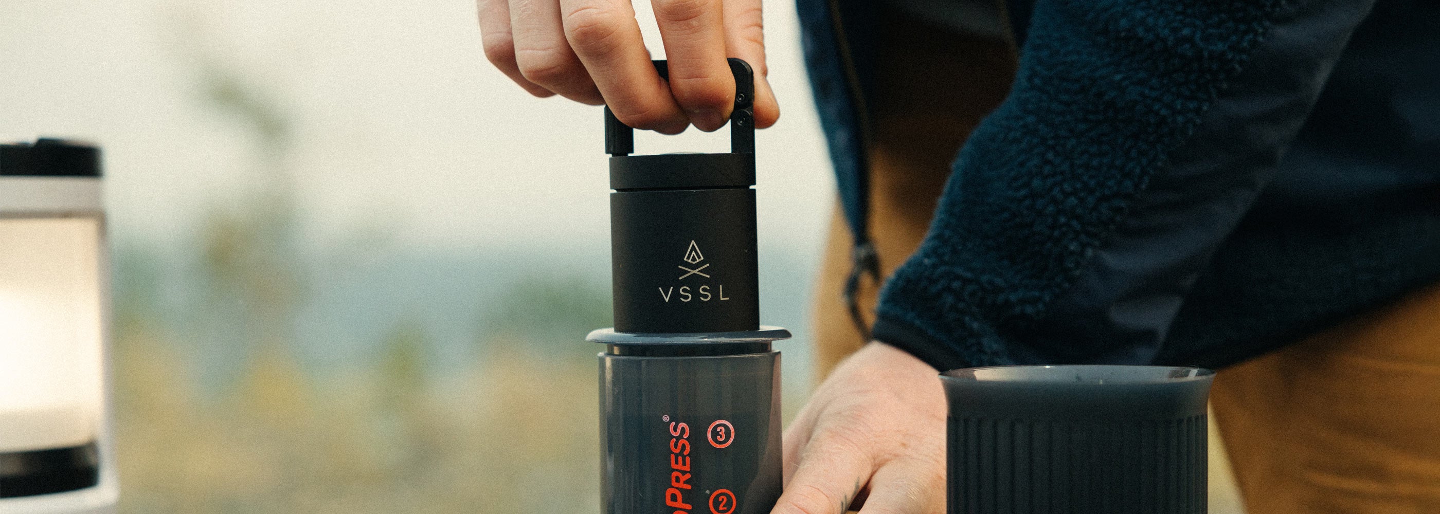 The AeroPress® Go Travel Coffee Maker is engineered to fuel an active lifestyle. This bundle solution gives coffee lovers everything they need to conveniently brew superb coffee anywhere. The AeroPress® Go provides the same great taste and brews 8oz of American, espresso, and cold brew style coffee that can be enjoyed as is or used in a wide range of energizing and refreshing drinks. The VSSL Java G25 Hand Grinder fits snug inside the AeroPress® Go Travel Coffee Maker for easy storage and compact transport.