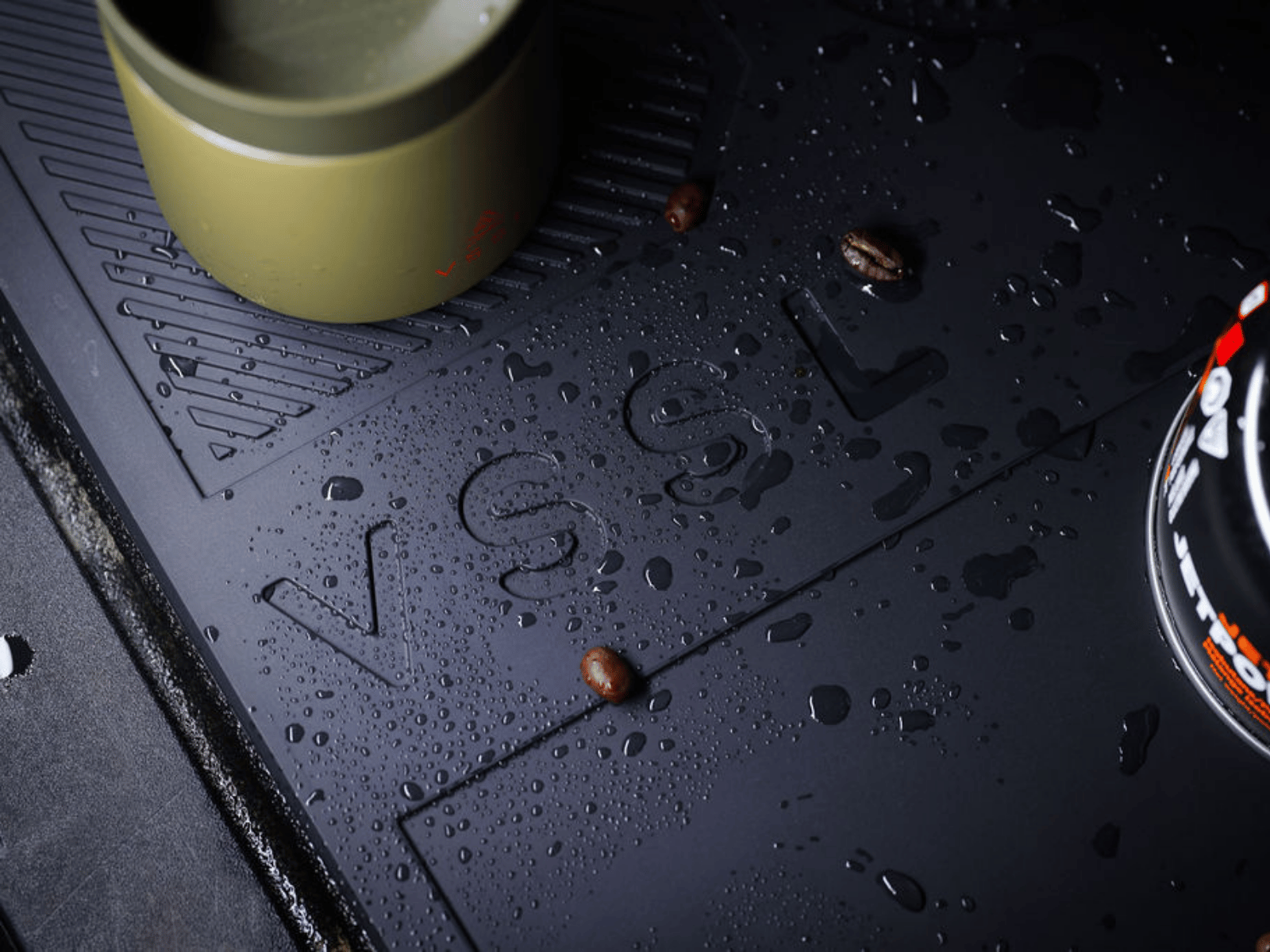 - Textured surface provides traction for coffee gear while catching spills and debris